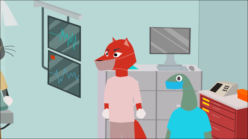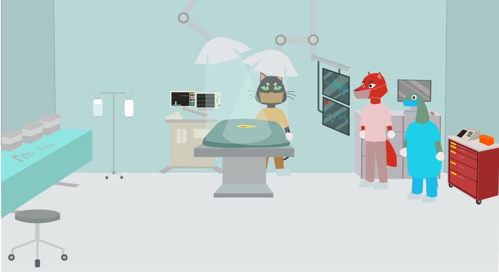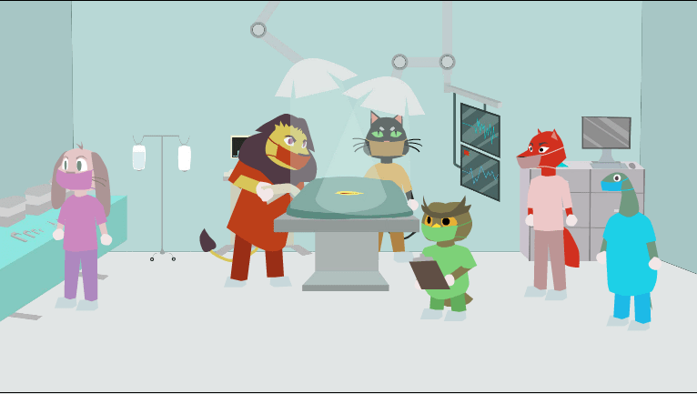 With a clear deliverable in mind, I went forward and made some character designs based on some personality archetypes included in the course. Knowing roughly what the story would be, I created 6 different animal characters that would represent the medical workers present in the room during the conflict.